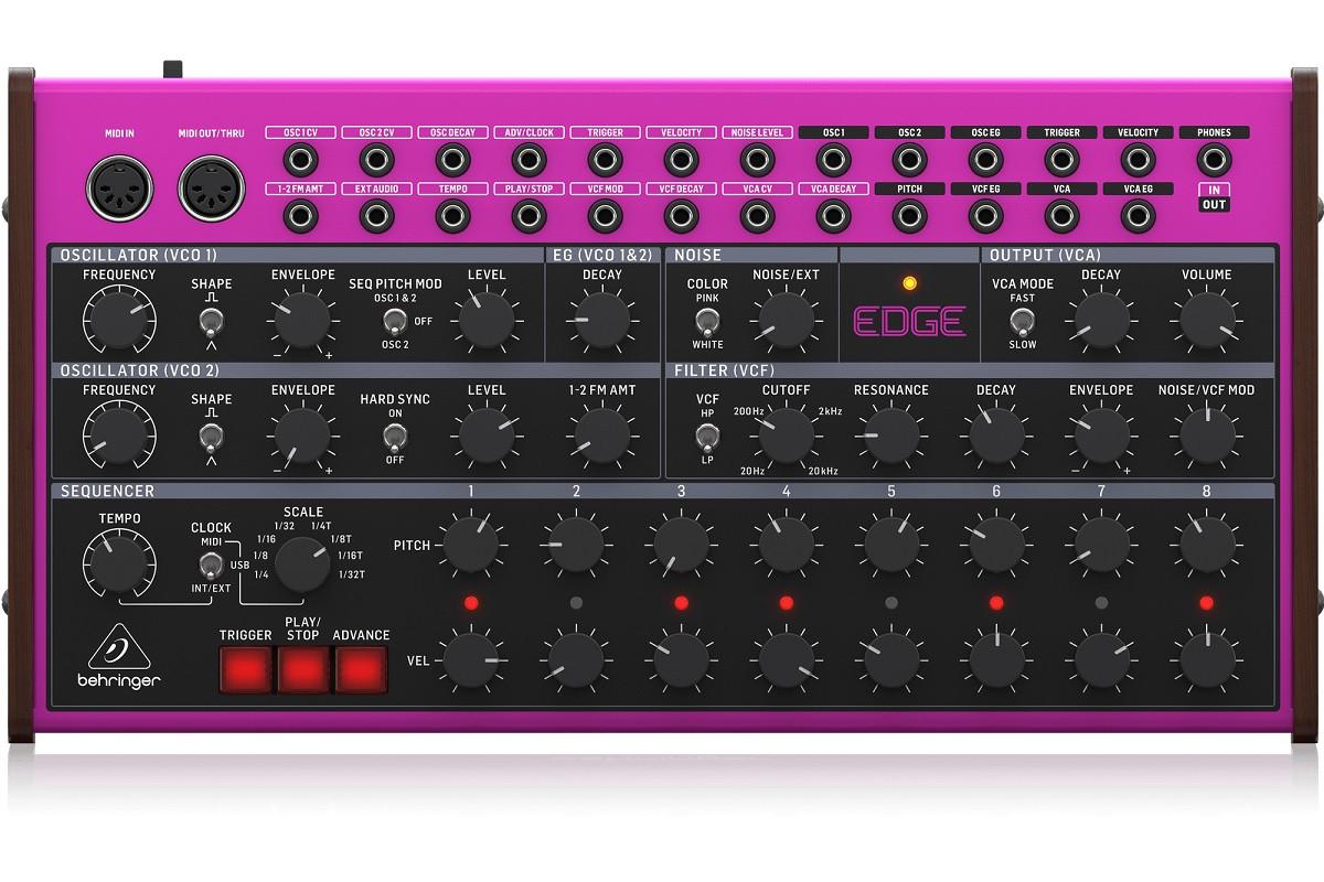 A Behringer EDGE félmoduláris analóg szintetizátor klasszikus áramköri tervezést ötvöz modern funkcionalitással. Parafon hangarchitektúrájának köszönhetően egyidejűleg több hangon képes megszólalni. A szintetizátor VCO, VCF, VCA és LFO modulokat tartalmaz, kiterjedt patch-pontokkal az egyéni jelútválasztáshoz. Beépített lépéses szekvenszere élő előadásban is hatékonyan alkalmazható. MIDI csatlakoztathatósága révén zökkenőmentesen integrálható modern stúdió- és élő előadás környezetekbe.