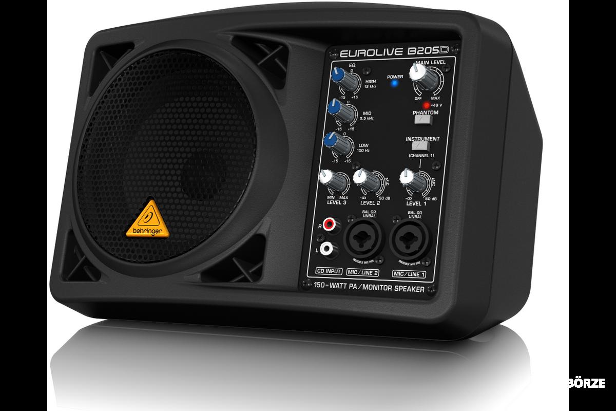 A Behringer EUROLIVE B205D 125 W folyamatos (150 W csúcs) D-osztályú erősítővel rendelkezik. Hangszórója egy 5,25 hüvelykes (133,5 mm) prémium neodímium szélessávú driver. A beépített 3 csatornás keverő basszus-, közép- és magasszabályzóval (EQ) van ellátva. A hangfal rendelkezik XLR és jack kombinált bemeneti csatlakozókkal, és monitor pozícióban dőlve is használható.