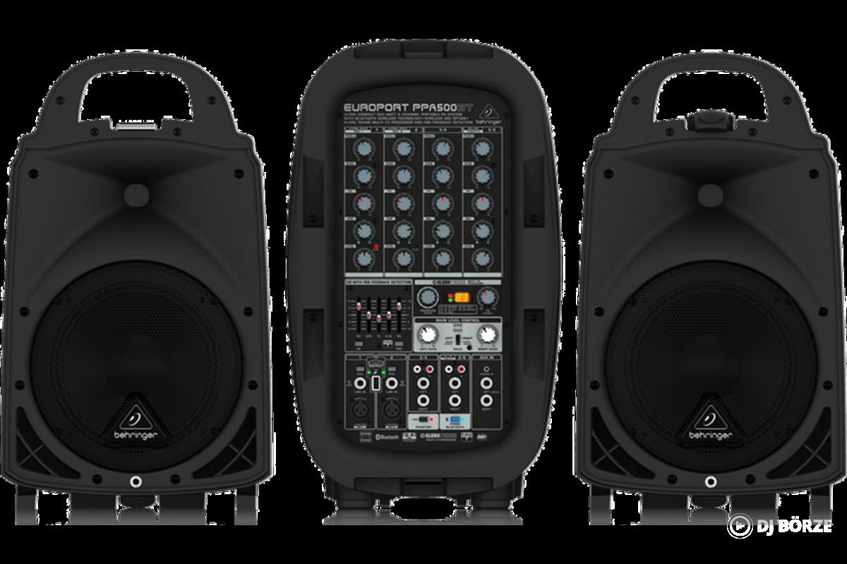 A Behringer Europort PPA500BT egy 500 W-os hordozható aktív PA rendszer beépített Bluetooth csatlakozással. Csatornakiosztása: 2 monó és 2 sztereó csatorna, XENYX mikrofon-előerősítőkkel és +48V fantomtáppal. A rendszer aktív szubwoofer-egységből és passzív szatellit hangszóróból áll, amelyek gyorsan összecsatlakoztathatók. A Bluetooth vevő lehetővé teszi a mobil eszközökről való vezeték nélküli lejátszást. A beépített effektprocesszor reverb és chorus hatásokat biztosít. Az egység állványra szerelhető a megfelelő hangszórás érdekében. A hordozást fogantyú és görgők segítik.
