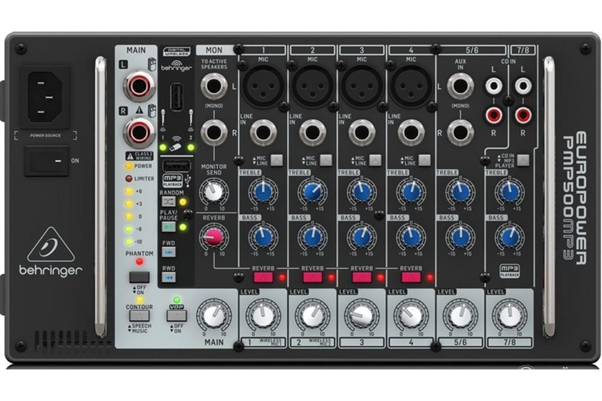 A Behringer Europower PMP500MP3 egy 500 W-os aktív keverőerősítő. Csatornakiosztása: 4 monó és 2 sztereó csatorna, XENYX mikrofon-előerősítőkkel és +48V fantomtáppal. A beépített USB/MP3 lejátszó közvetlenül pendrive-ról is képes zenelejátszásra. A 7-sávos grafikus ekvalizátor pontos hangszín-beállítást tesz lehetővé. Az FBQ visszacsatolás-érzékelő rendszer LED-jelzőkkel mutatja a gerjedési pontokat. A kimeneteken Speakon és XLR csatlakozók találhatók. A beépített effektprocesszor reverb és egyéb hatásokat kínál. A 19 colos rack-méretű ház rack-be is szerelhető.