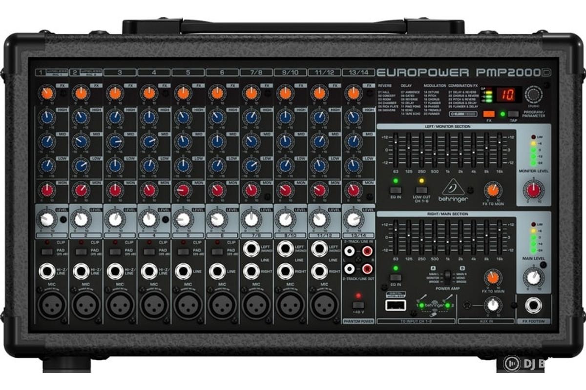 A Behringer PMP2000D egy 14 csatornás erősítős keverőpult, amely 2x500 Watt teljesítményt nyújt sztereó módban (4 Ohm), vagy 1000 Watt teljesítményt hídkötésű módban. Beépített XENYX mikrofon előerősítőkkel és KLARK TEKNIK FX processzorral rendelkezik, amely 100 effektprogramot tartalmaz. Az FBQ visszacsatolás-érzékelő rendszer jelzőfénnyel figyelmeztet a visszacsatolás veszélyére. A keverőpult 7 sávos grafikus EQ-val, főkimenettel (XLR), monitor kimenettel és sub-woofer kimenettel is felszerelt. Fantomtáp (+48V) biztosítja a kondenzátormikrofonok tápellátását.