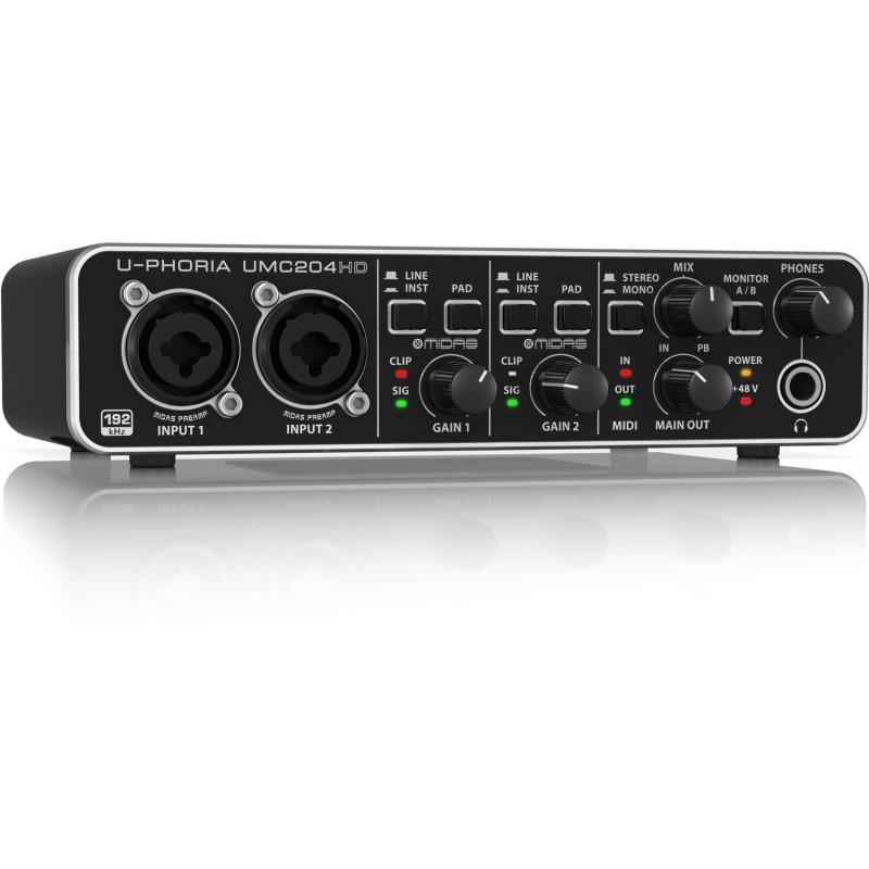 A UMC204HD egy 2 bemenetes és 4 kimenetes USB 2.0 audió interfész, 24 bites/192 kHz-es felbontással. Kompatibilis az Avid Pro Tools, Ableton Live, Steinberg Cubase és más DAW szoftverekkel. Alacsony késleltetésű 2 bemenet és 4 kimenet biztosítja a rugalmas stúdiómunkát.