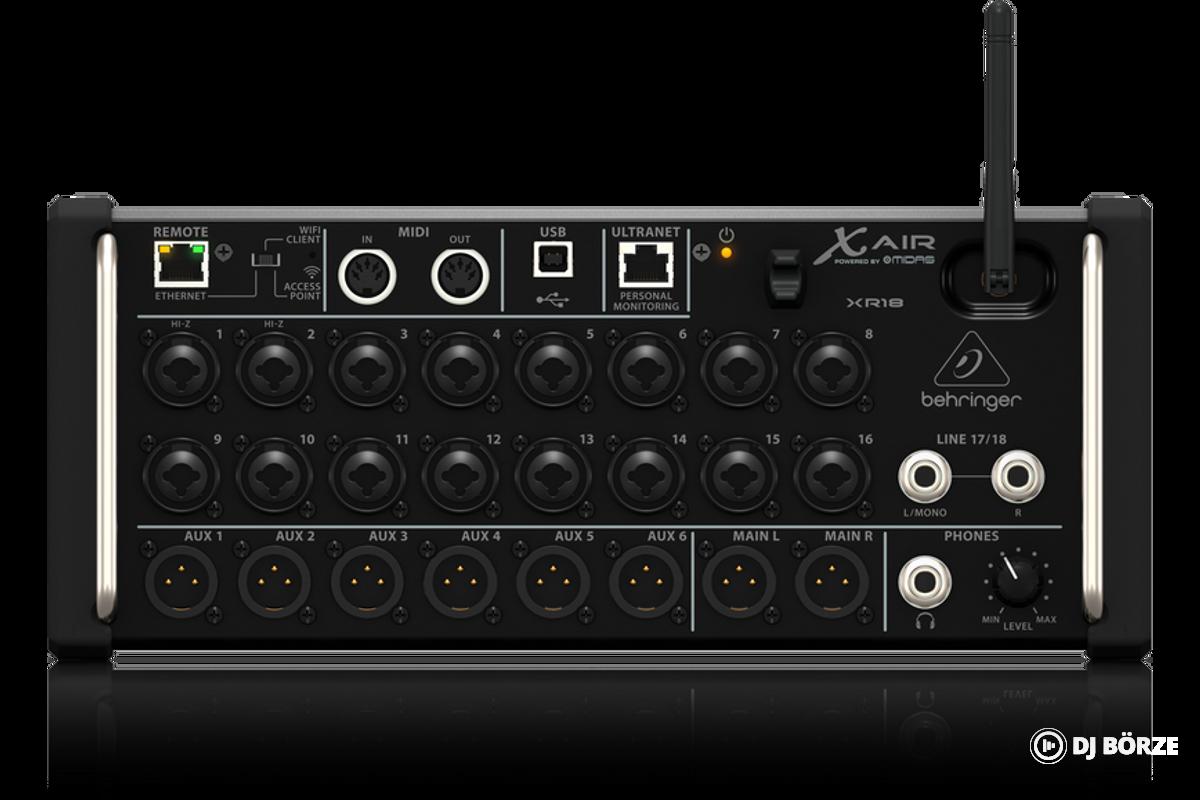 A Behringer X AIR XR18 digitális keverőpult nagyobb zenekaroknak, élőzenés helyszíneknek és stúdióknak ajánlott, ahol 18 csatornás, rugalmas és hordozható keverési megoldásra van szükség. Közvetlen USB felvételi lehetősége révén kiváló választás koncertfelvételekhez és multitrack rögzítéshez is. Az alkalmazásalapú vezérlés lehetővé teszi a hangtechnikusi munkát a terem bármely pontjáról.