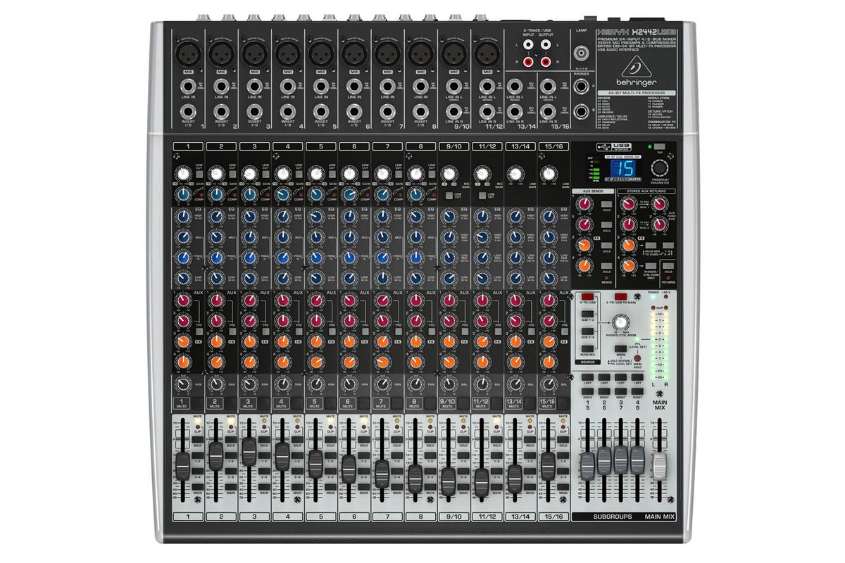 Az X2442USB 10 monó és 4 sztereo csatornával, összesen 24 bemenettel rendelkezik, amelyek mindegyike XENYX mikrofon előerősítővel van ellátva. A keverő 4 Aux Send és 4 sztereo Aux Return buszt kínál, minden monó csatornán egygombos kompresszort tartalmaz. Beépített USB audio interfész teszi lehetővé a közvetlen számítógépes rögzítést. Az eszköz 4/2 buszos architektúrával és sztereo FX processzorral is rendelkezik.