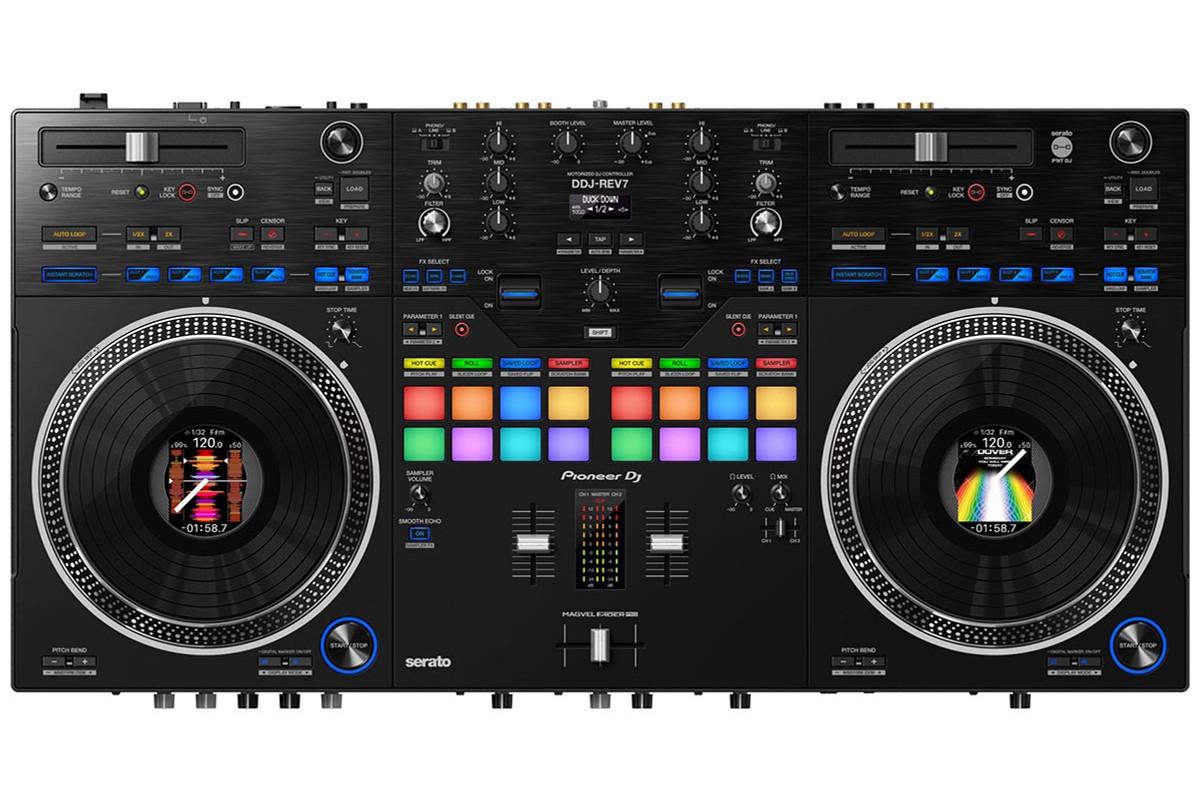 A DDJ-REV7 két csatornás elrendezésű, DJM-S sorozatú keverő és PLX lemezjátszó ihlette battle-style kialakítással. Mindkét tányéra motorizált, középen LCD kijelzővel ellátva. Dual USB port lehetővé teszi a back-to-back szetteket és a DJ-csere zökkenőmentes végrehajtását. A kontroller teljes értékű Serato DJ Pro kompatibilitással rendelkezik, és tartalmazza a szoftver licencét. Csatornánként dedikált Performance Pad szekció és Beat FX vezérlők találhatók.