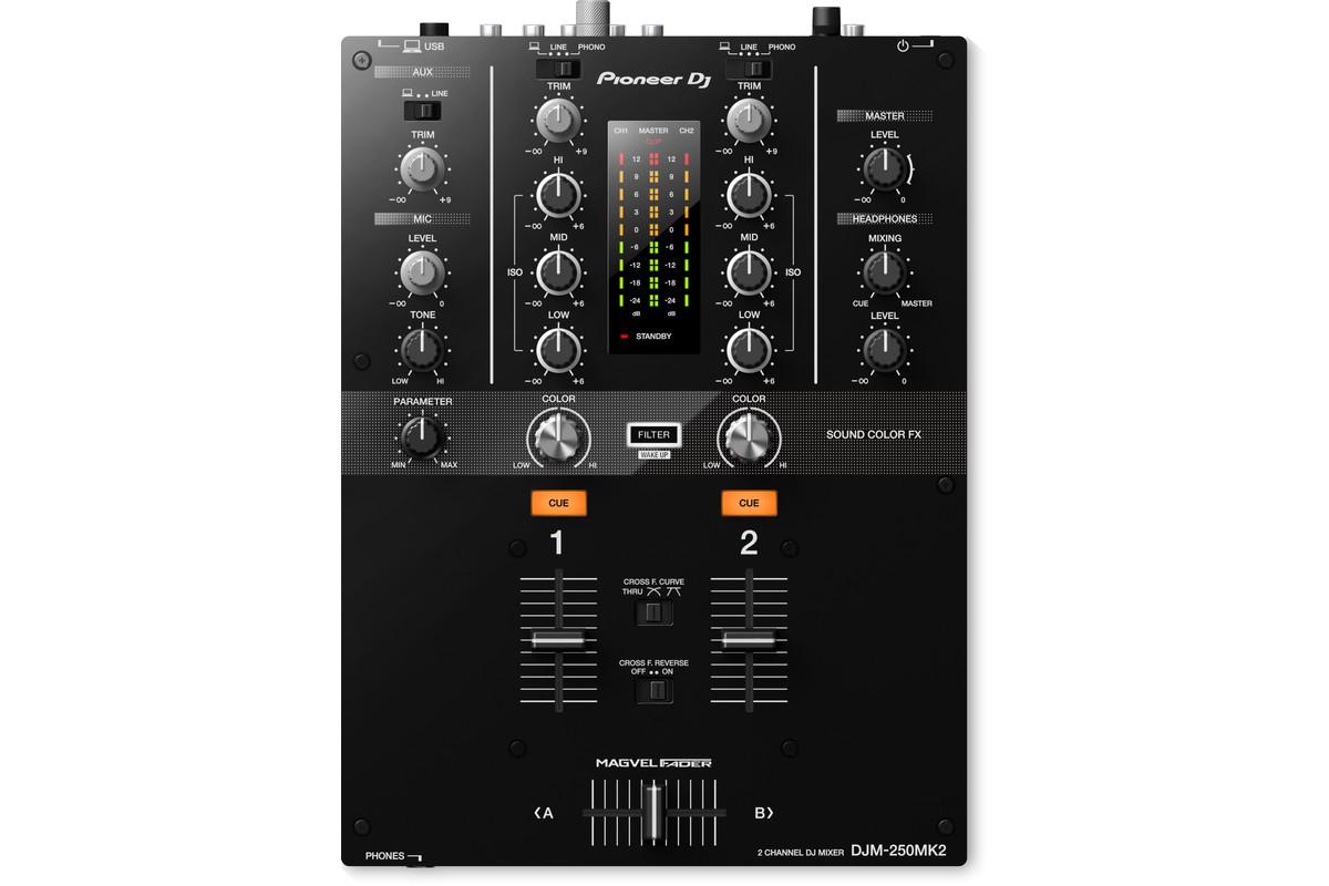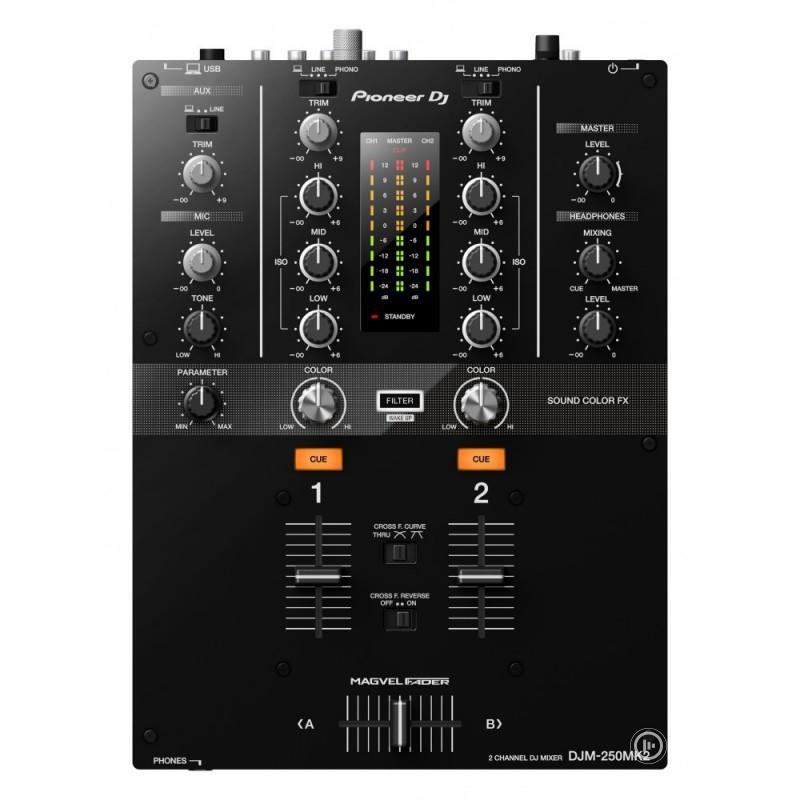 A DJM-250MK2 egy 2-csatornás digitális DJ keverő, amely a DJM-900NXS2-ből örökölt Magvel crossfaderrel és Sound Color FX szűrővel rendelkezik. Beépített 24 bites/96 kHz-es hangkártya USB-n keresztül csatlakoztatható számítógéphez, így külső hangkártya nélkül is használható felvételre és lejátszásra. Kompatibilis a rekordbox DJ szoftverrel, amely lehetővé teszi a számítógépes vezérlést és a könyvtárkezelést. Csatornánként 3-sávos EQ található, valamint dedikált fejhallgató-kimenet cue-monitorozáshoz. Az eszköz kompakt mérete ellenére tartalmazza a professzionális Pioneer DJ keverők legfontosabb funkcióit.