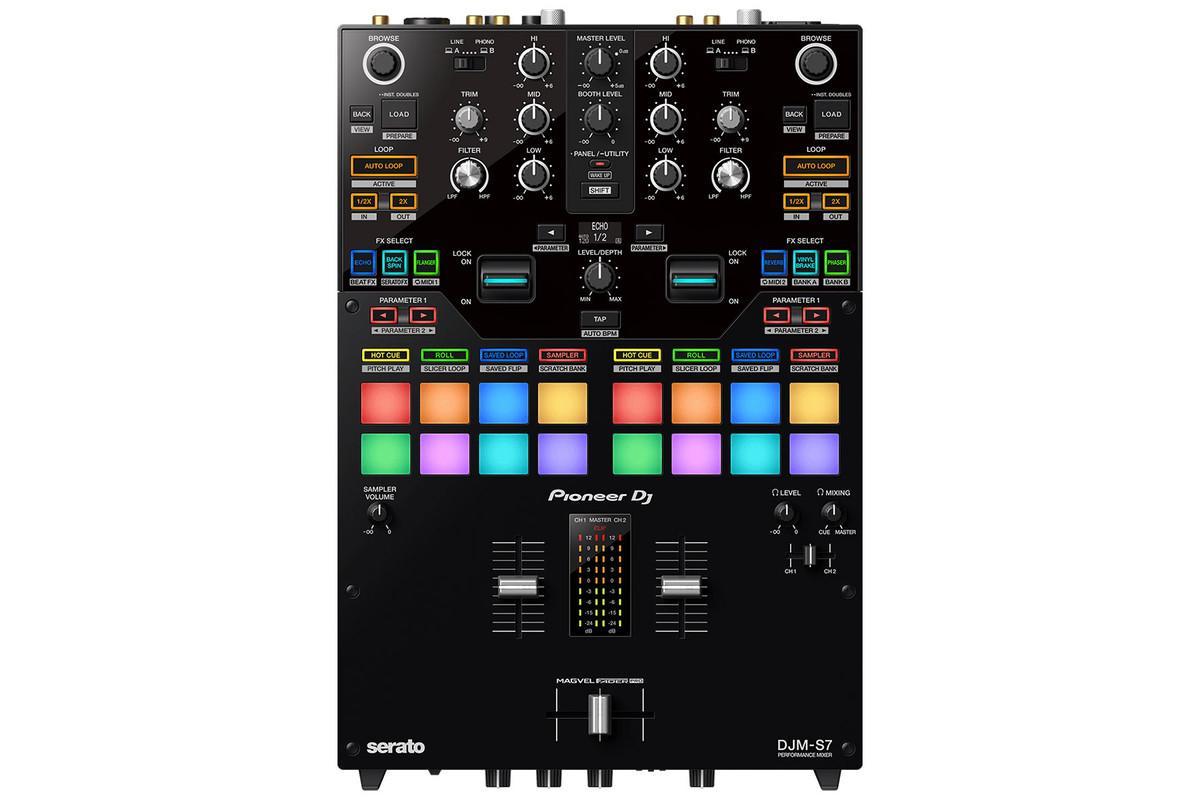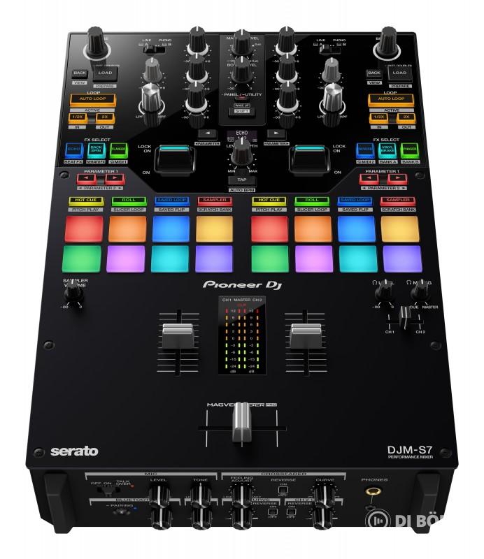 A DJM-S7 egy 2-csatornás DJ keverő Magvel Pro mágneses crossfaderrel, csatornánként 3 sávos EQ-val és Kill kapcsolókkal. Tartalmaz Beat FX és Sound Color FX szekciót, valamint csatornánként 4 performance padot. Csatlakozása USB-C interfészen keresztül történik, és Serato DJ Pro licencet tartalmaz; Rekordbox hardveres unlockként is funkcionál. Mikrofon-bemenettel és fejhallgató-kimenettel is rendelkezik.
