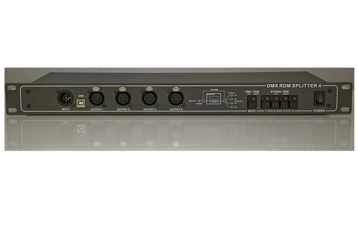 RDM / DMX jelerősítő, elosztó. A beérkező DMX és RDM jelet négy irányba erősítve (akár digitálisan újra alakítva) képes továbbítani. Mind a bemenet, mind a kimenetek galvanikusan leválaszottak. A négy kimenet egymástól függetlenül konfigurálható (digitális újra alakítás, RDM szűrő). Üzemmódok Erősítő: A beérkező DMX jel minden esetben galvanikusan leválasztva, és erősítve megy tovább a kimenetekről. Digitális újraadás: A béerkező jelet a köztponti processzor feldolgoza, és újragenerálva juttatja a kimenetre Digitális újraadás RDM-el: A beérkező jelet a központi processzor feldolgozza, újra alakítva juttatja a kimenetekre, és szükség szerint vissza irányú kapcsolást végez az RDM-es eszközök válaszolásakor A készülék szoftvere PC-ről frissíthető, és konfigurálható. Kezelőszervek Nyomógombok: 1 a bementhez, 4 a kimenethez, kétledes gombok állapot jelzséhez Csatlakozók Tápellátás: 230V AC, biztosítékos műszerkábel csatlakozó aljazat DMX bemenet: beépített XLR ccsatlakozó 3 vagy 5 pólusú DMX kimenetek: beépített XLR dugó 3 vagy 5 pólusú Tartozékok Hozzáadott: kezelési útmutató, tápkábel Kiegészítő termék: RDM Director, RDM Emulator Kiszerelés Méret: 483 x 105 x 48 mm Súly: 1,6 Kg Csomagolás: bélelt kartondoboz A termékről további információk szerzéséhez töltse le a lentebb található kezelési útmutatót. A szoftverfrissítéséhez szükséges információkat, és a szükséges szoftvereket, leírásokat az oldalunkon talál. Bármilyen kérdésével várjuk személyes megkeresését elérhetősegeinken.